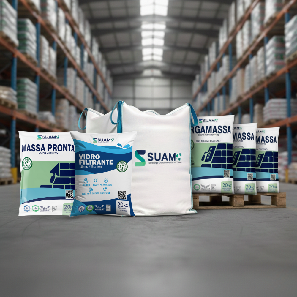 Linha de argamassas desenvolvida com base em tecnologia de reaproveitamento de materiais, oferecendo resistência, aderência e aplicações para diferentes tipos de obra.